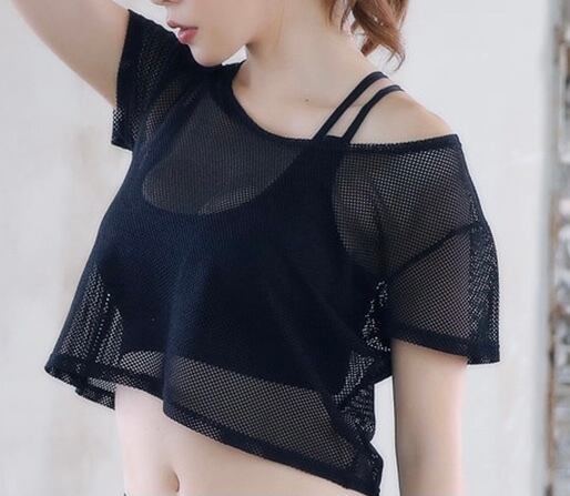 ヨガウェア♡ピラティスウェア♡半袖♡Tシャツ♡トレーニングウェア♡メッシュウェア